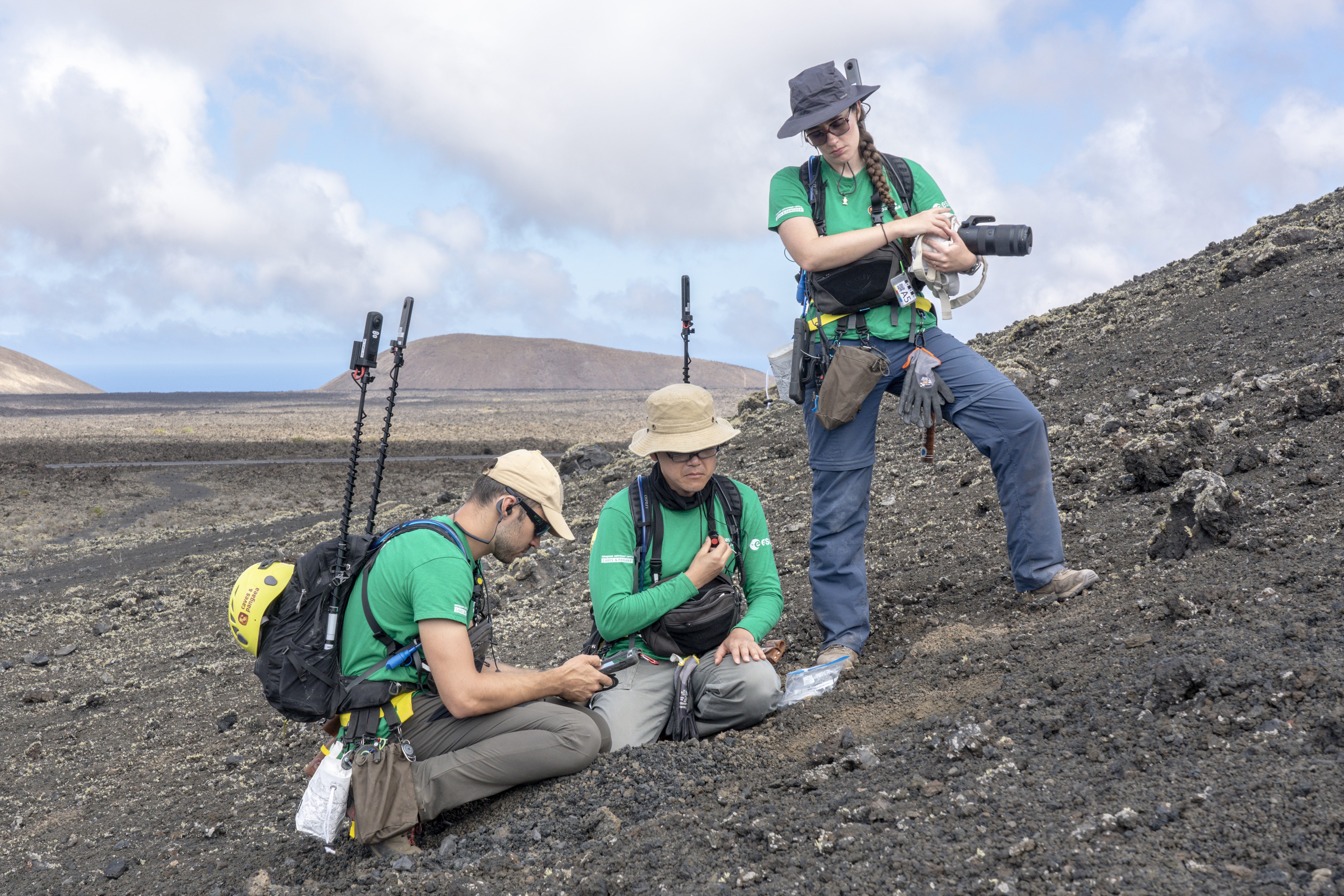 パンゲア(PANGAEA)訓練にて、ランサローテの溶岩地帯でトラバース訓練を行う金井宣茂宇宙飛行士ら / 欧州宇宙機関(ESA)が実施するパンゲア(Planetary ANalogue Geological and Astrobiological Exercise for Astronauts: PANGAEA)訓練 3週目 / スペイン カナリア諸島 ランサローテ島 / 撮影日:2024年9月27日(日本時間)