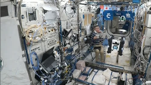 油井宇宙飛行士 第6回きぼうロボットプログラミング競技会(Kibo-RPC)の軌道上運用であるテクニカルリハーサルの様子
