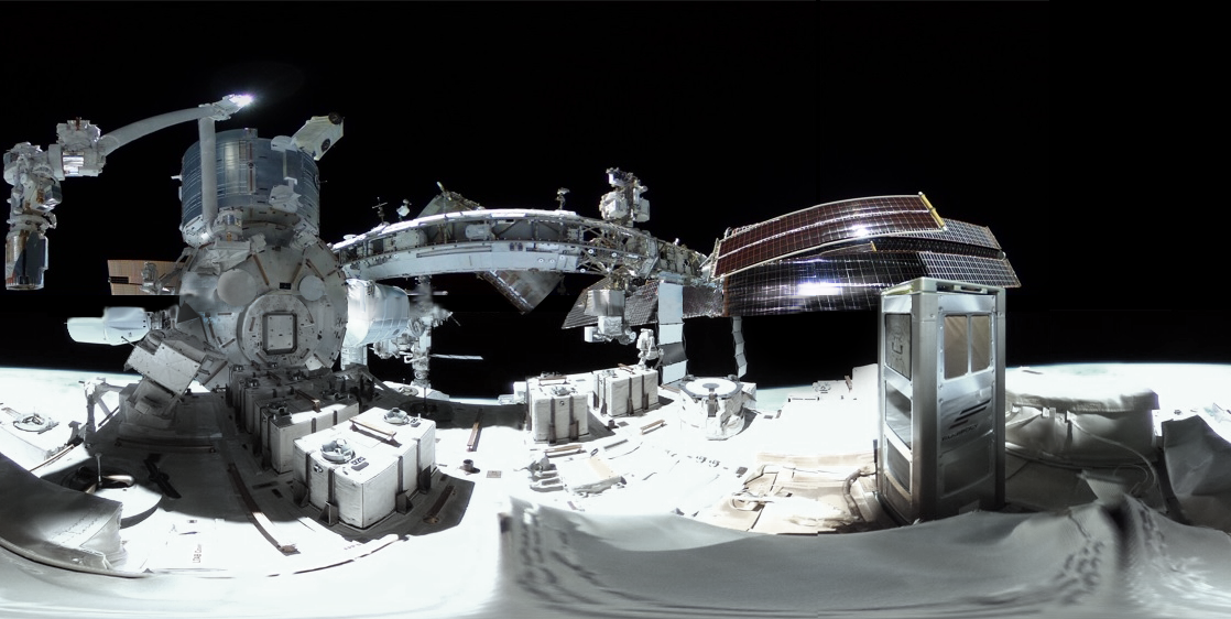 モニタカメラから撮影された簡易材料曝露実験ブラケット(ExBAS)