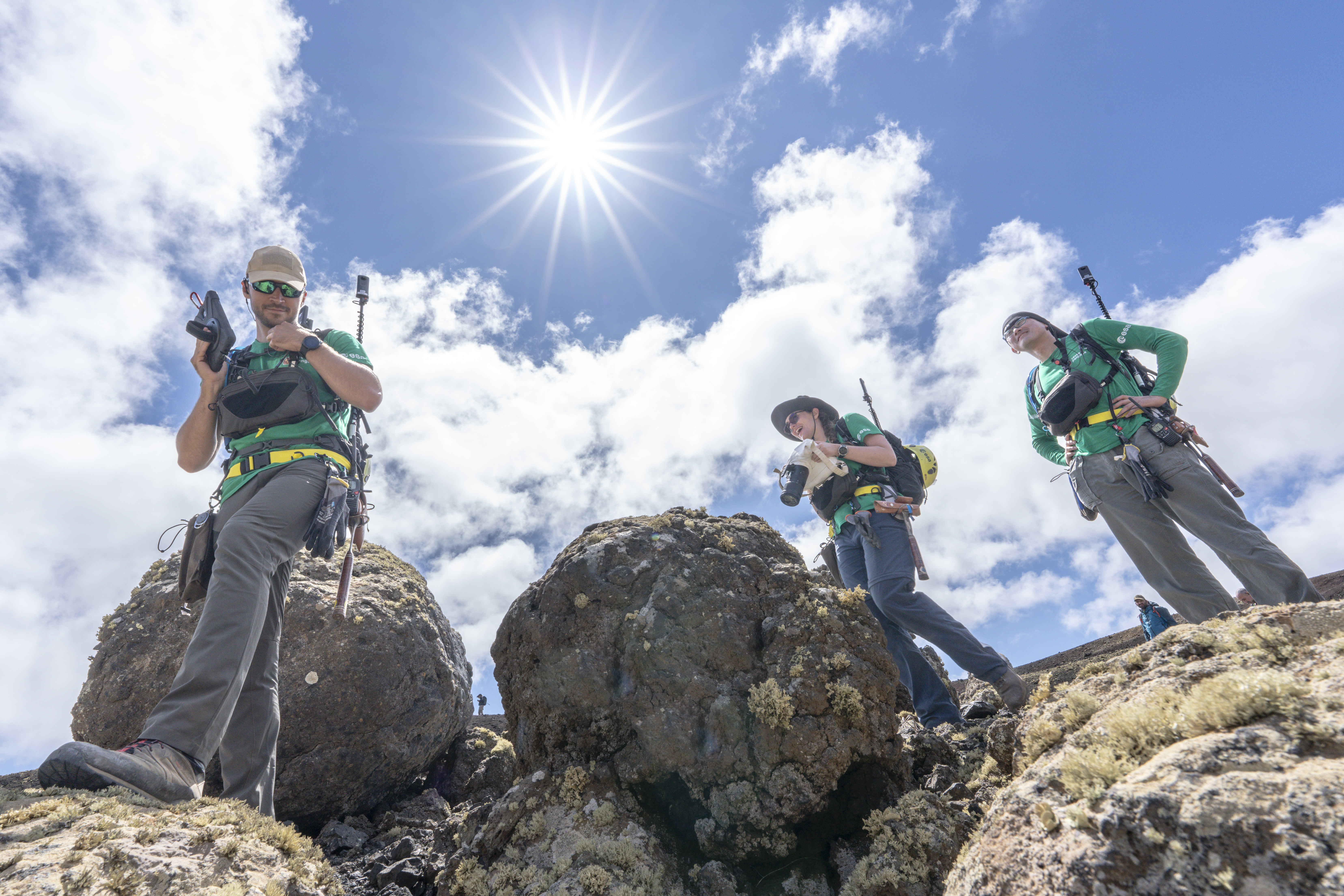 パンゲア(PANGAEA)訓練にて、ランサローテの溶岩地帯でトラバース訓練を行う金井宣茂宇宙飛行士ら / 欧州宇宙機関(ESA)が実施するパンゲア(Planetary ANalogue Geological and Astrobiological Exercise for Astronauts: PANGAEA)訓練 3週目 / スペイン カナリア諸島 ランサローテ島 / 撮影日:2024年9月27日(日本時間)