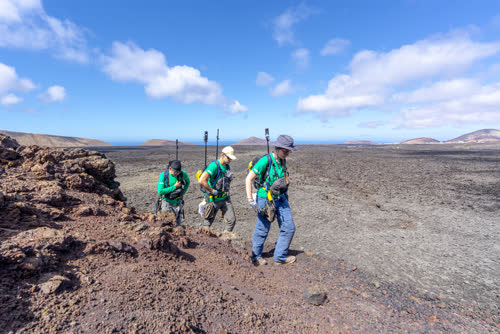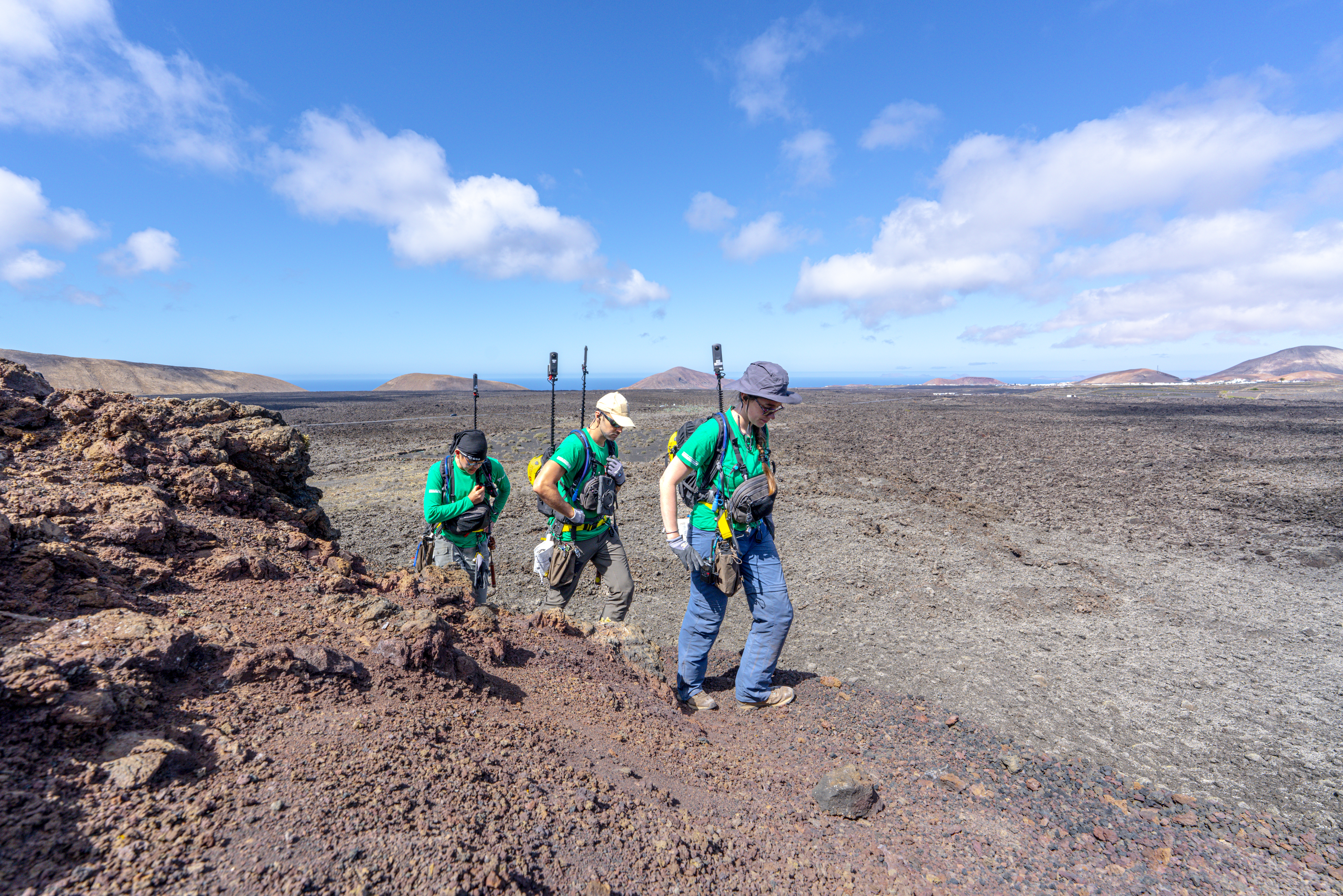 パンゲア(PANGAEA)訓練にて、ランサローテの溶岩地帯でトラバース訓練を行う金井宣茂宇宙飛行士ら / 欧州宇宙機関(ESA)が実施するパンゲア(Planetary ANalogue Geological and Astrobiological Exercise for Astronauts: PANGAEA)訓練 3週目 / スペイン カナリア諸島 ランサローテ島 / 撮影日:2024年9月27日(日本時間)