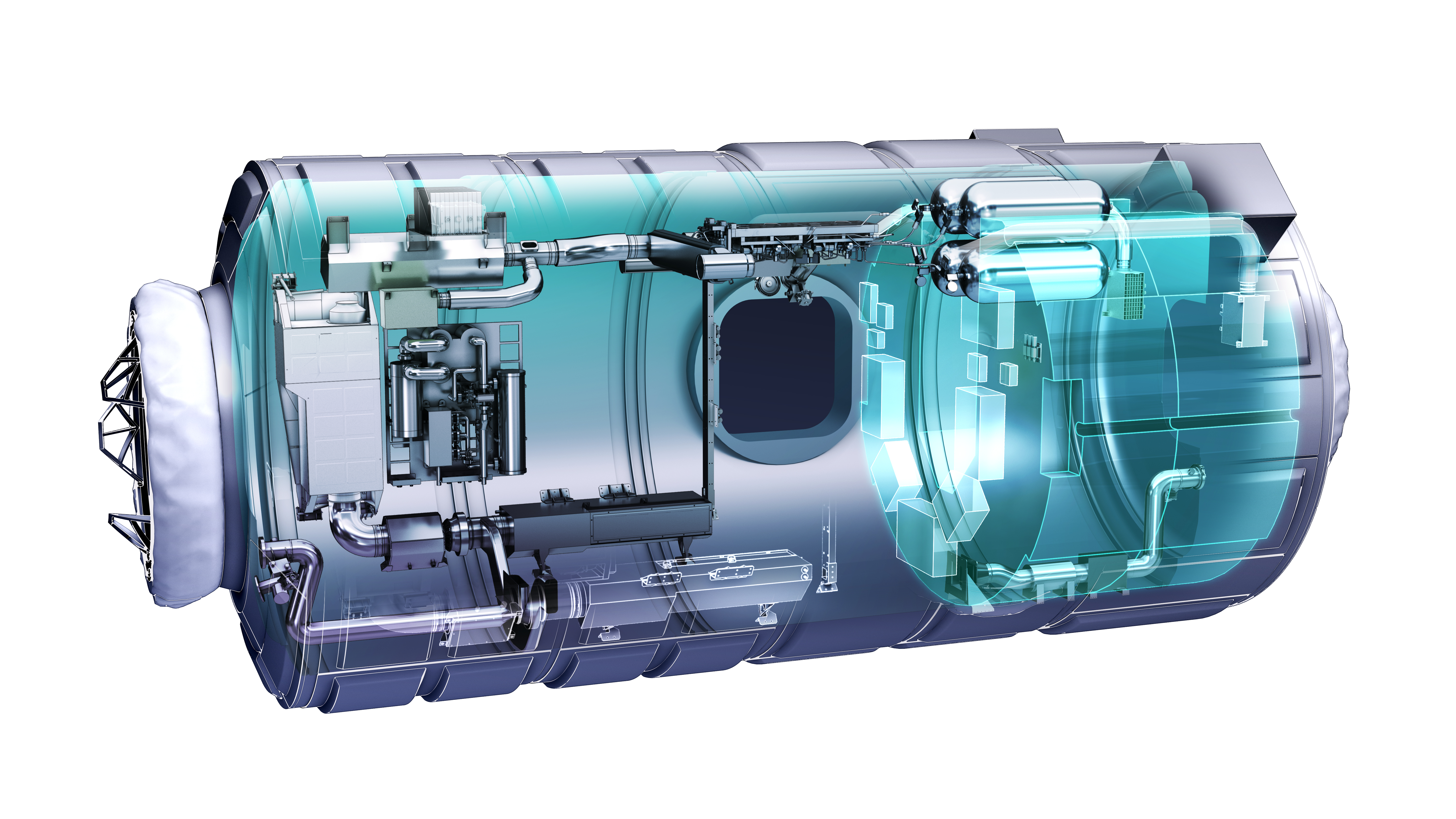 The Environmental Control and Life Support System (ECLSS) in the International Habitation Module (I-Hab) of the Gateway. This image can be provided in jpg and png.