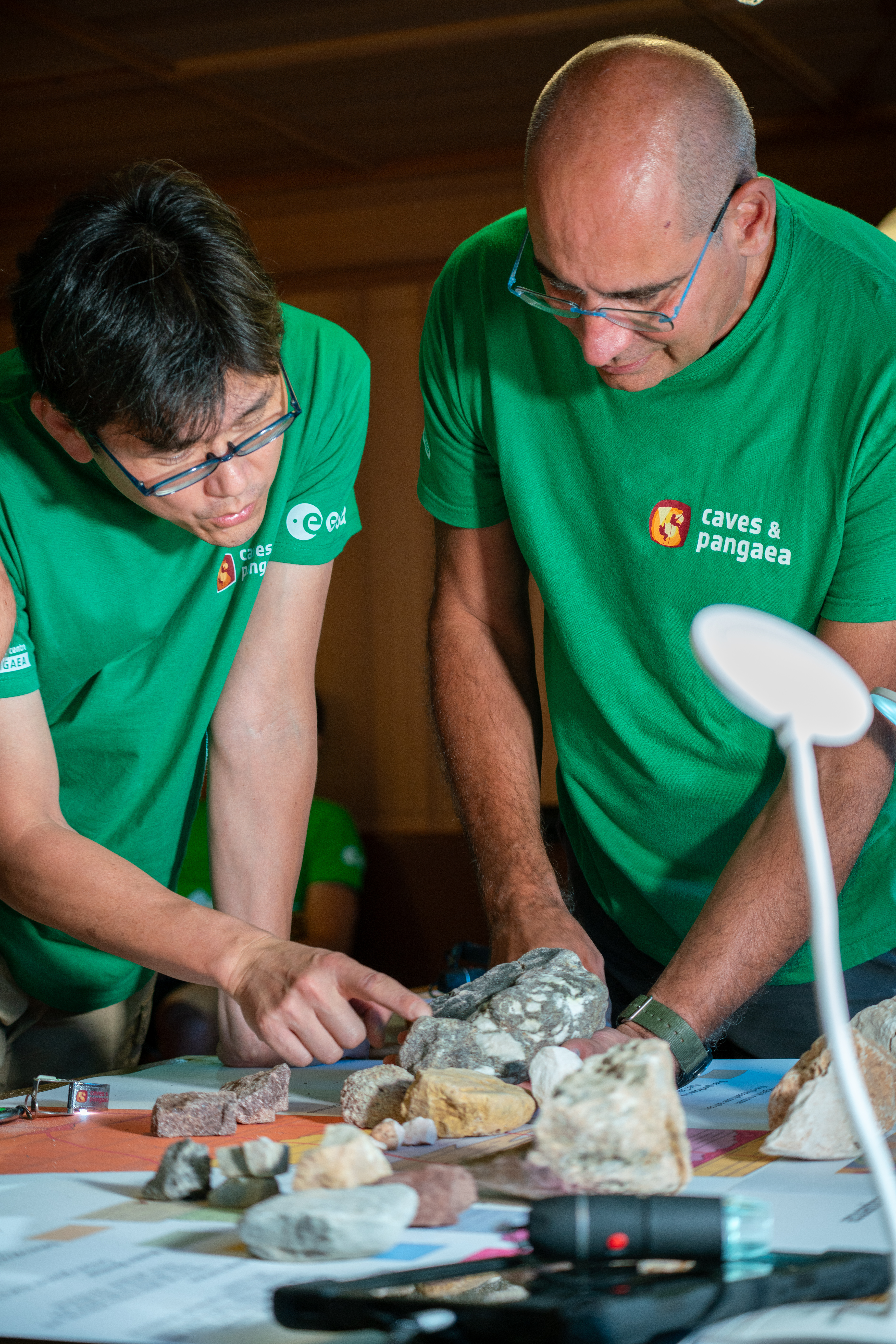 パンゲア(PANGAEA)訓練にて、岩石サンプルについてインストラクターから説明をうける金井宣茂宇宙飛行士ら / 欧州宇宙機関(ESA)が実施するパンゲア(Planetary ANalogue Geological and Astrobiological Exercise for Astronauts: PANGAEA)訓練 1週目 / イタリア ブレッターバッハ / 撮影日:2024年9月9日(日本時間)