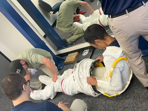 JAXA astronaut candidate Suwa Makoto conducts an Extravehicular Mobility Unit (EMU) fit check at NASA's Neutral Buoyancy Laboratory (NBL). / June 28, 2024