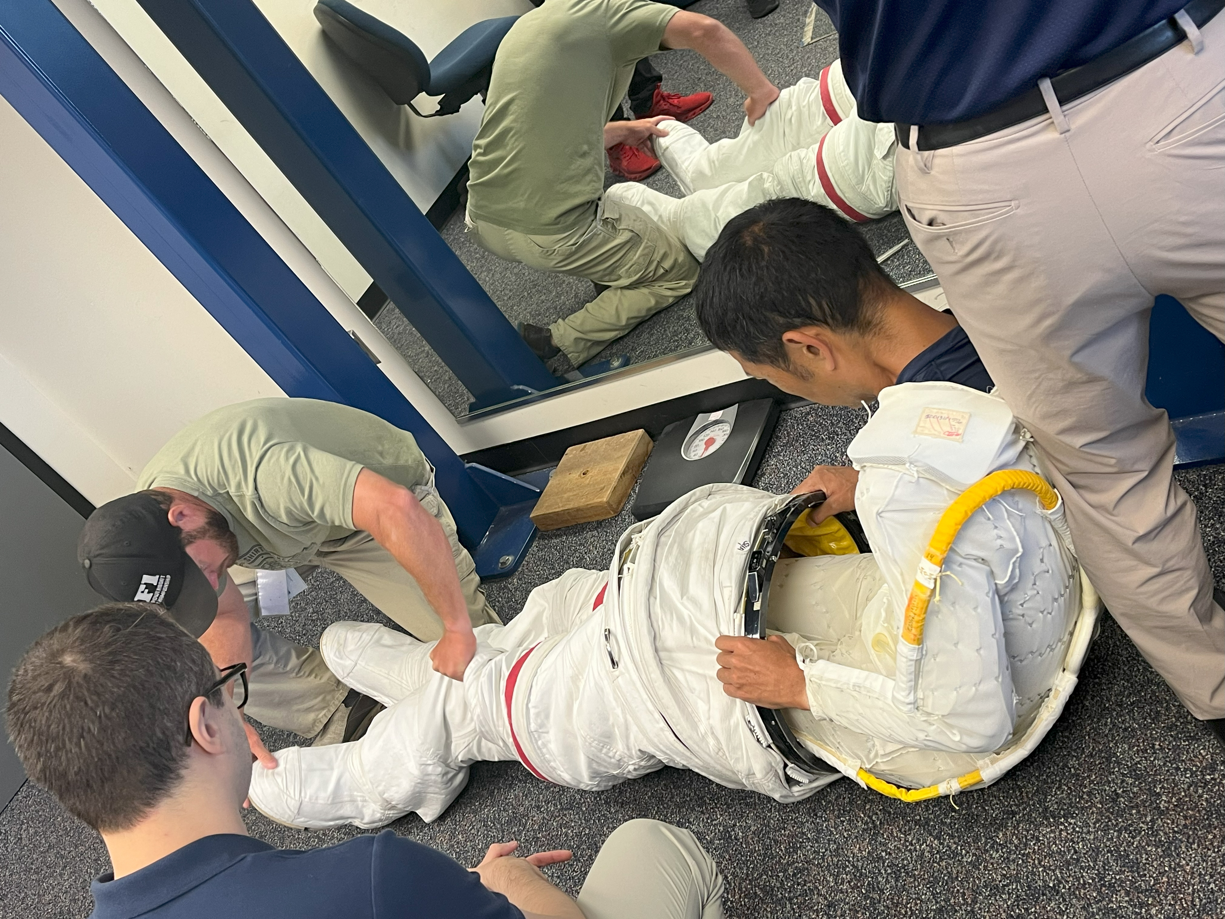 EMU Fit Check for JAXA Astronaut Candidate Suwa Makoto