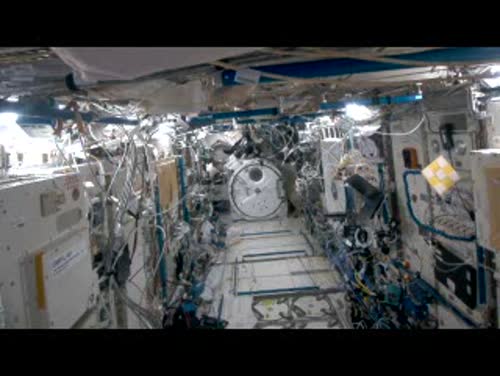 JEM船内可搬型ビデオカメラシステム実証2号機(Int-Ball2)が撮影した新型宇宙ステーション補給機(HTV-X)1号機与圧モジュール / 「きぼう」船内実験室 / 「ハーモニー」(第2結合部) / 撮影日:2026年2月18日(GMT)