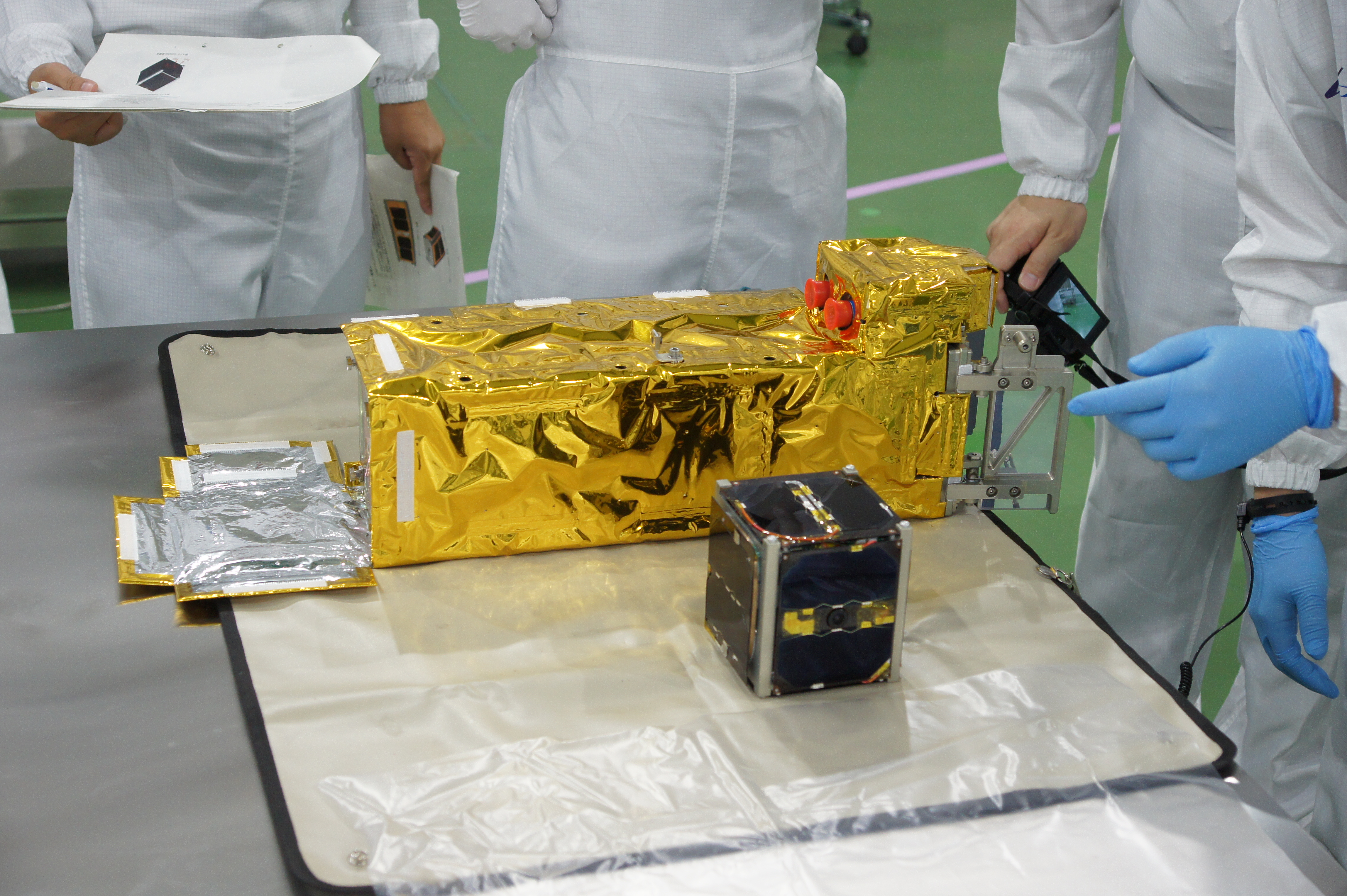 革新的衛星技術実証1号機 NEXUS(日本大学)キューブサット放出装置(E-SSOD)への格納の様子