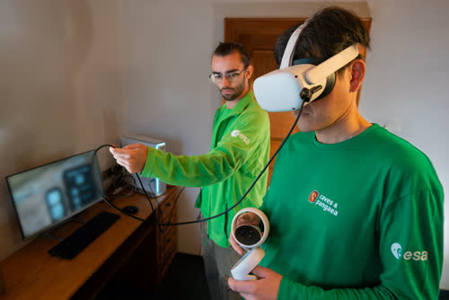 パンゲア(PANGAEA)訓練にて、VRを使って火星表面の探査を行う金井宣茂宇宙飛行士 / 欧州宇宙機関(ESA)が実施するパンゲア(Planetary ANalogue Geological and Astrobiological Exercise for Astronauts: PANGAEA)訓練 1週目 / イタリア ブレッターバッハ / 撮影日:2024年9月12日(日本時間)