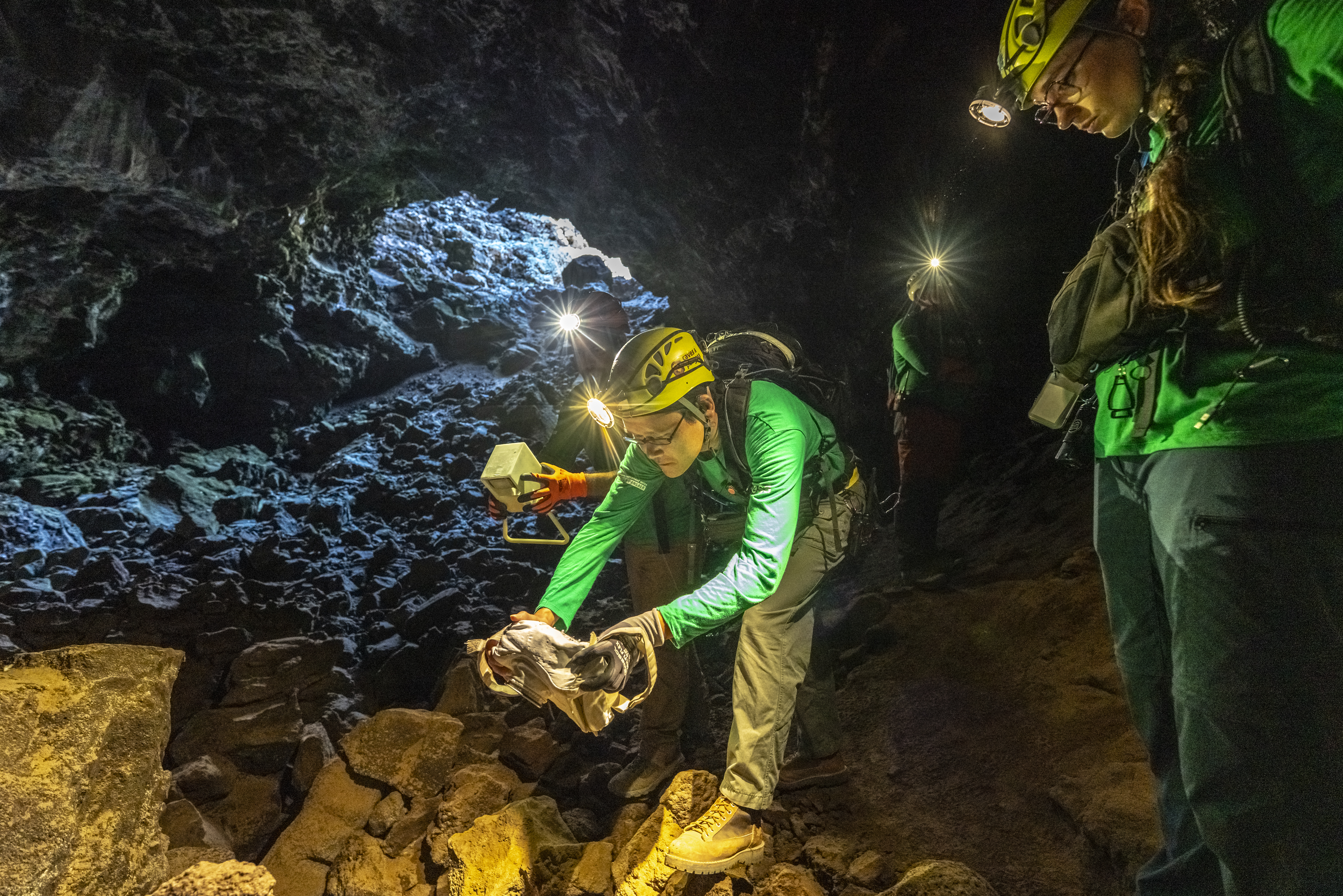 パンゲア(PANGAEA)訓練にて、コロナ溶岩チューブで洞窟探査を行う金井宣茂宇宙飛行士ら / 欧州宇宙機関(ESA)が実施するパンゲア(Planetary ANalogue Geological and Astrobiological Exercise for Astronauts: PANGAEA)訓練 3週目 / スペイン カナリア諸島 ランサローテ島 / 撮影日:2024年9月26日(日本時間)