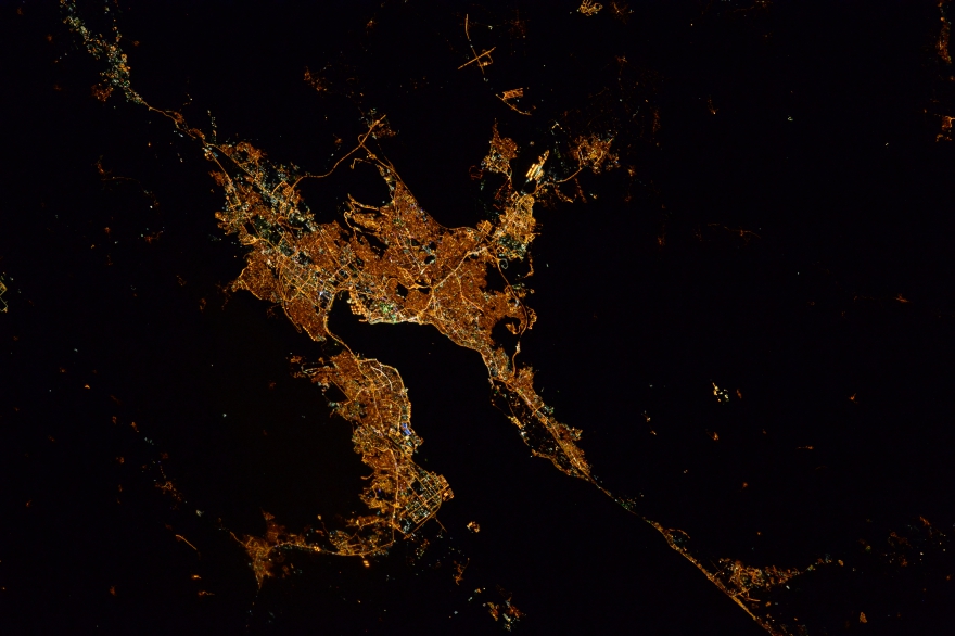 ISSから撮影された都市の夜景 / 国際宇宙ステーション(ISS)から撮影された都市の夜景 / 油井宇宙飛行士撮影 / 撮影日:2015年12月5日(日本時間)(DIMS:iss045e171357)