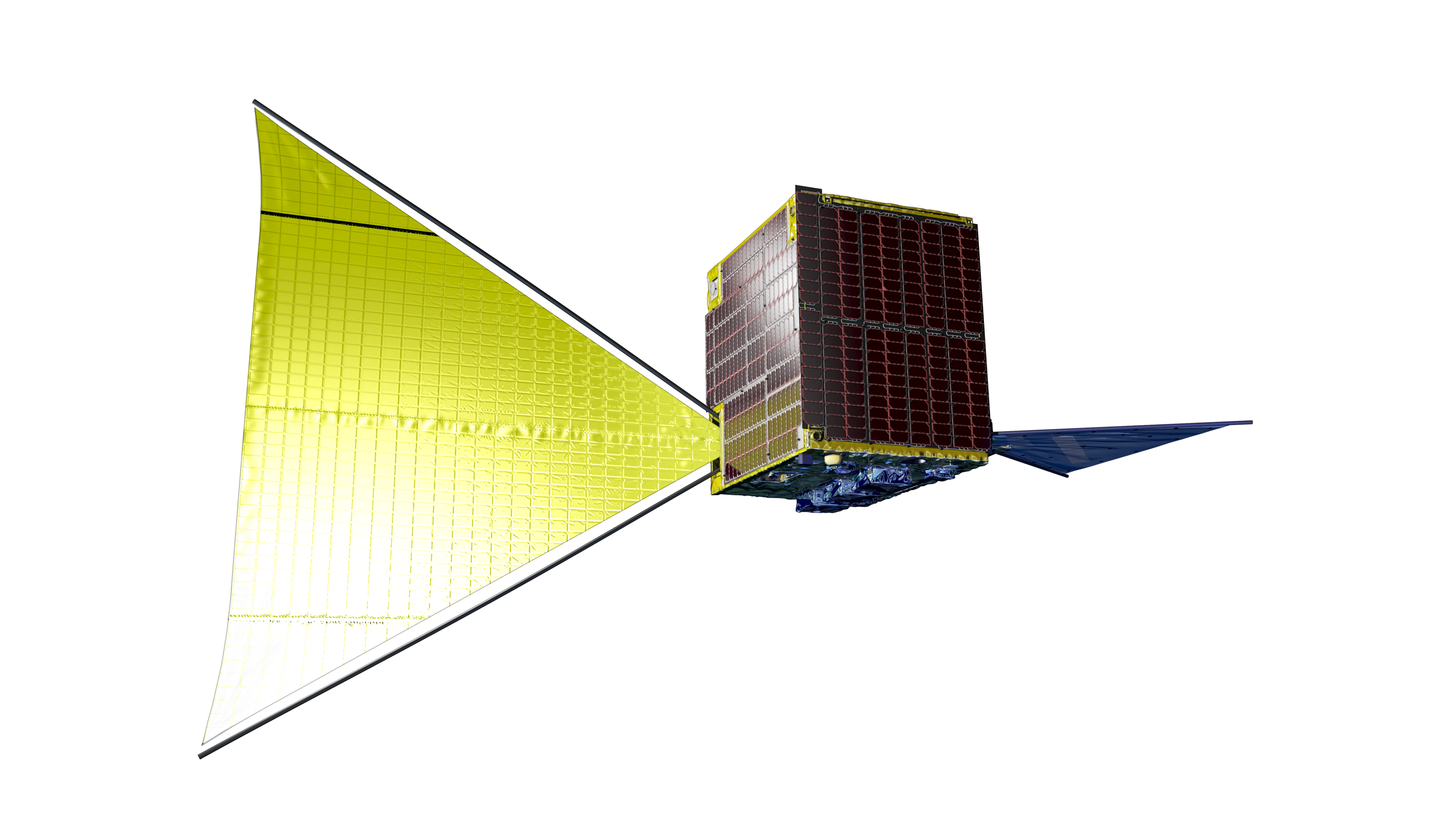 革新的衛星技術実証4号機の小型実証衛星4号機(RAISE-4)。 公募により選定された8つの部品・機器の実証テーマを搭載し、軌道上で実証テーマ機器の実験を行います。 <軌道上で展開物を展開した後の形態>