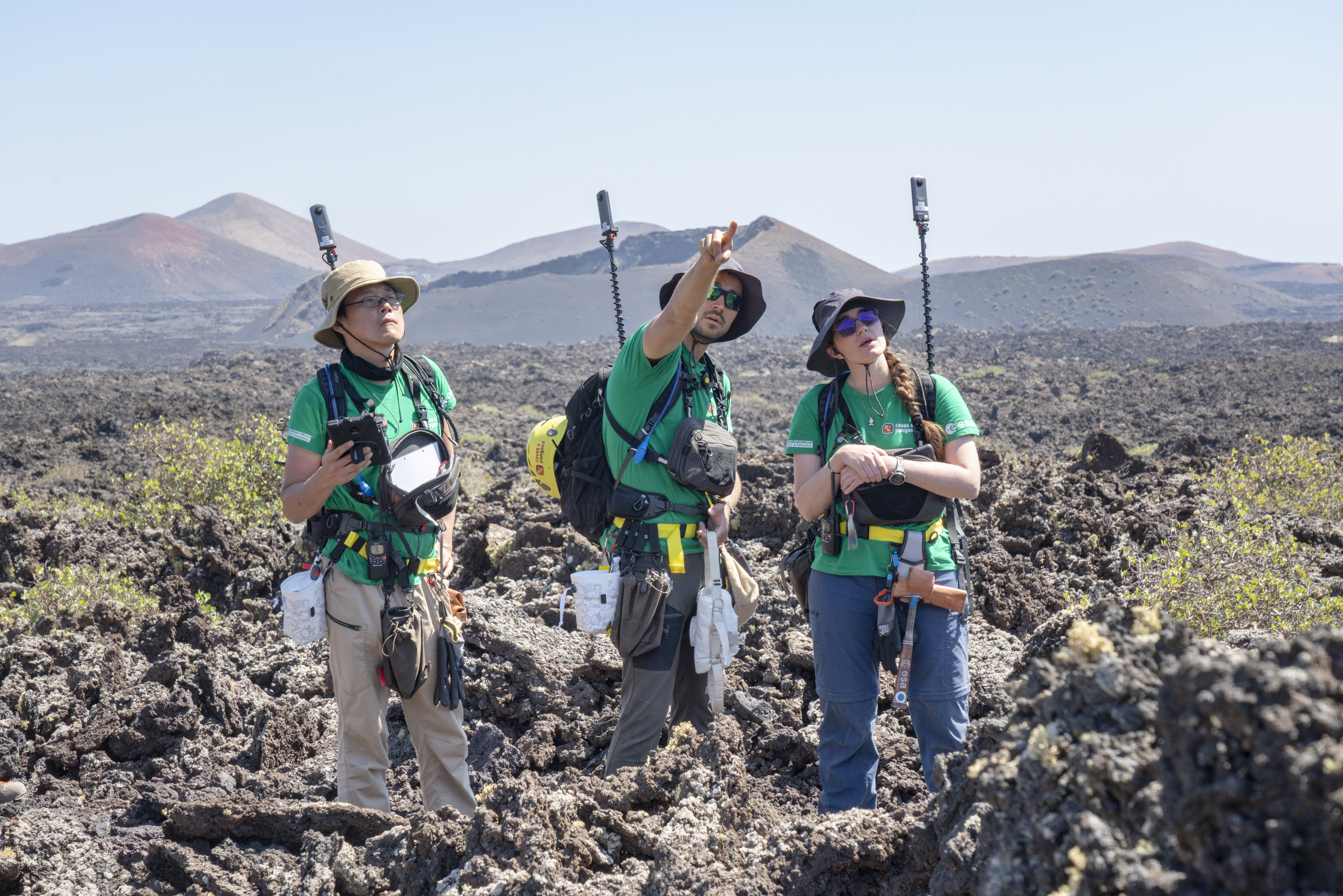 パンゲア(PANGAEA)訓練にて、ランサローテの溶岩地帯でトラバース訓練を行う金井宣茂宇宙飛行士ら / 欧州宇宙機関(ESA)が実施するパンゲア(Planetary ANalogue Geological and Astrobiological Exercise for Astronauts: PANGAEA)訓練 3週目 / スペイン カナリア諸島 ランサローテ島 / 撮影日:2024年9月25日(日本時間)