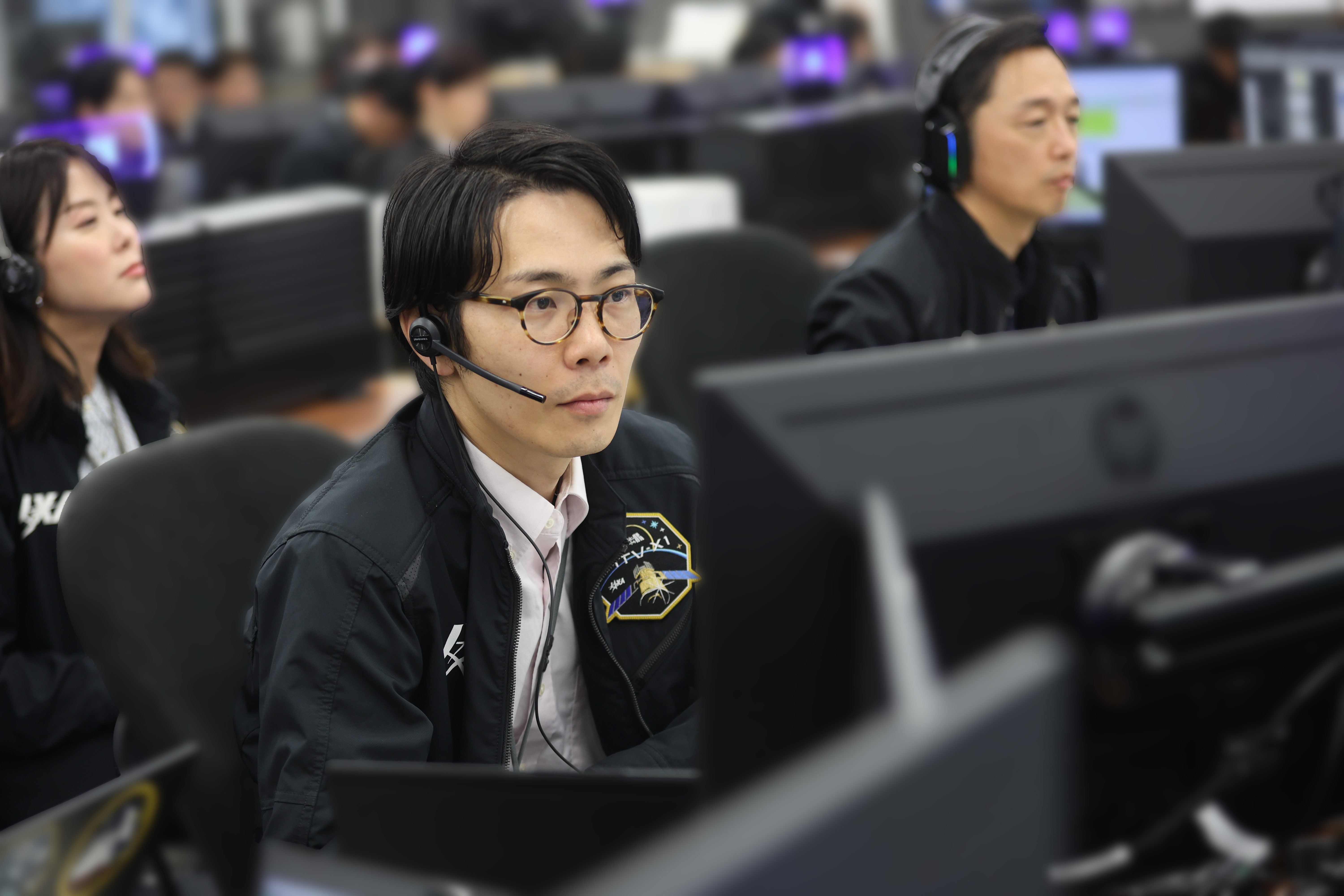 新型宇宙ステーション補給機(HTV-X)1号機 把持時のHTV-X運用管制室の様子 / 筑波宇宙センター(TKSC) 宇宙ステーション運用棟 HTV-X運用管制室 / 撮影日:2025年10月29日(日本時間)