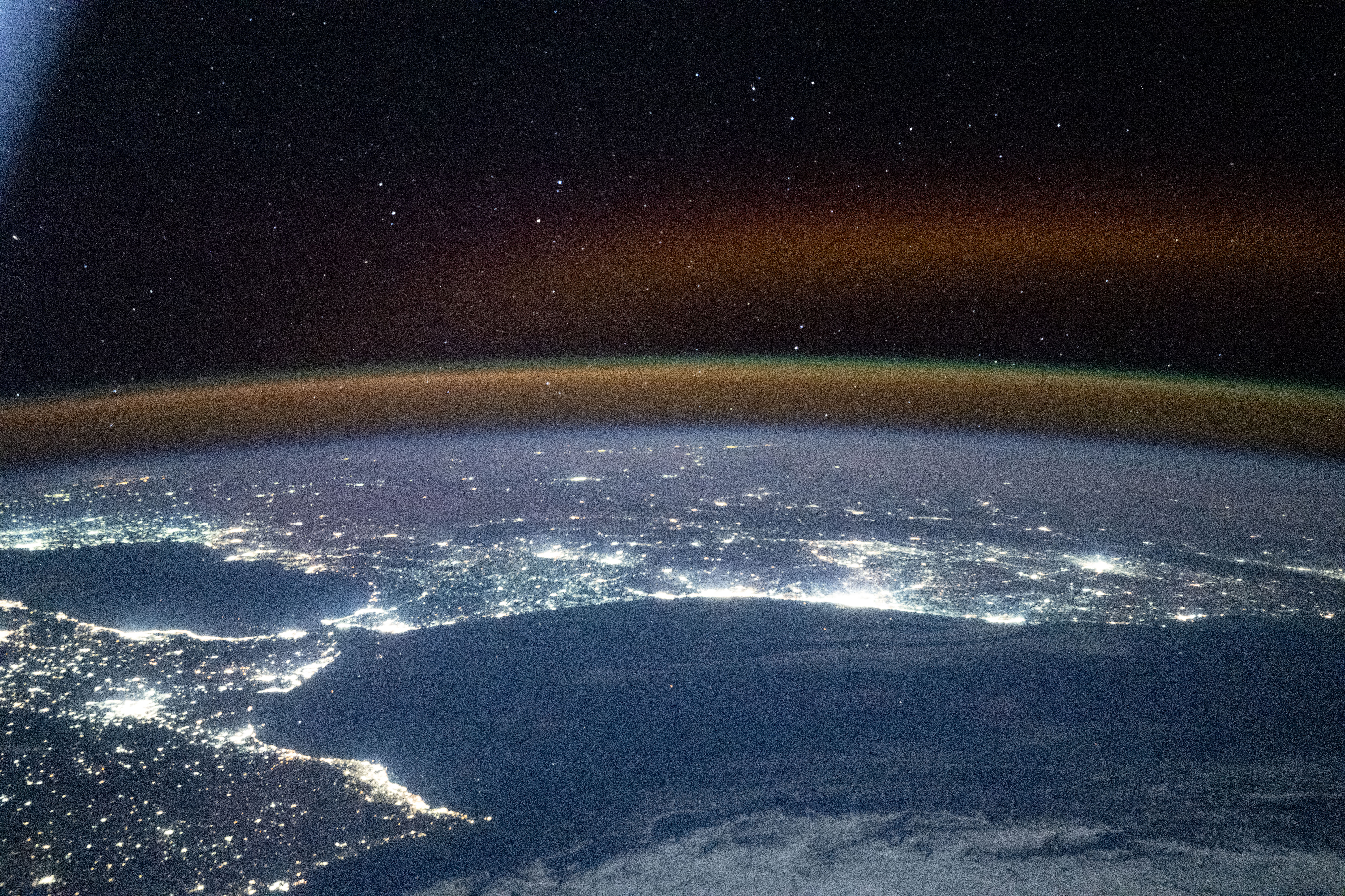 ISSから撮影されたジブラルタル海峡周辺の夜景