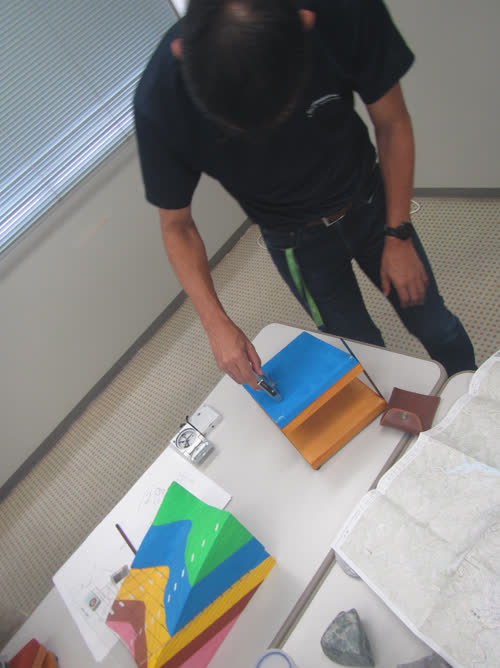 基礎訓練(地質学概論(地質図学))の講義を受ける諏訪宇宙飛行士候補者