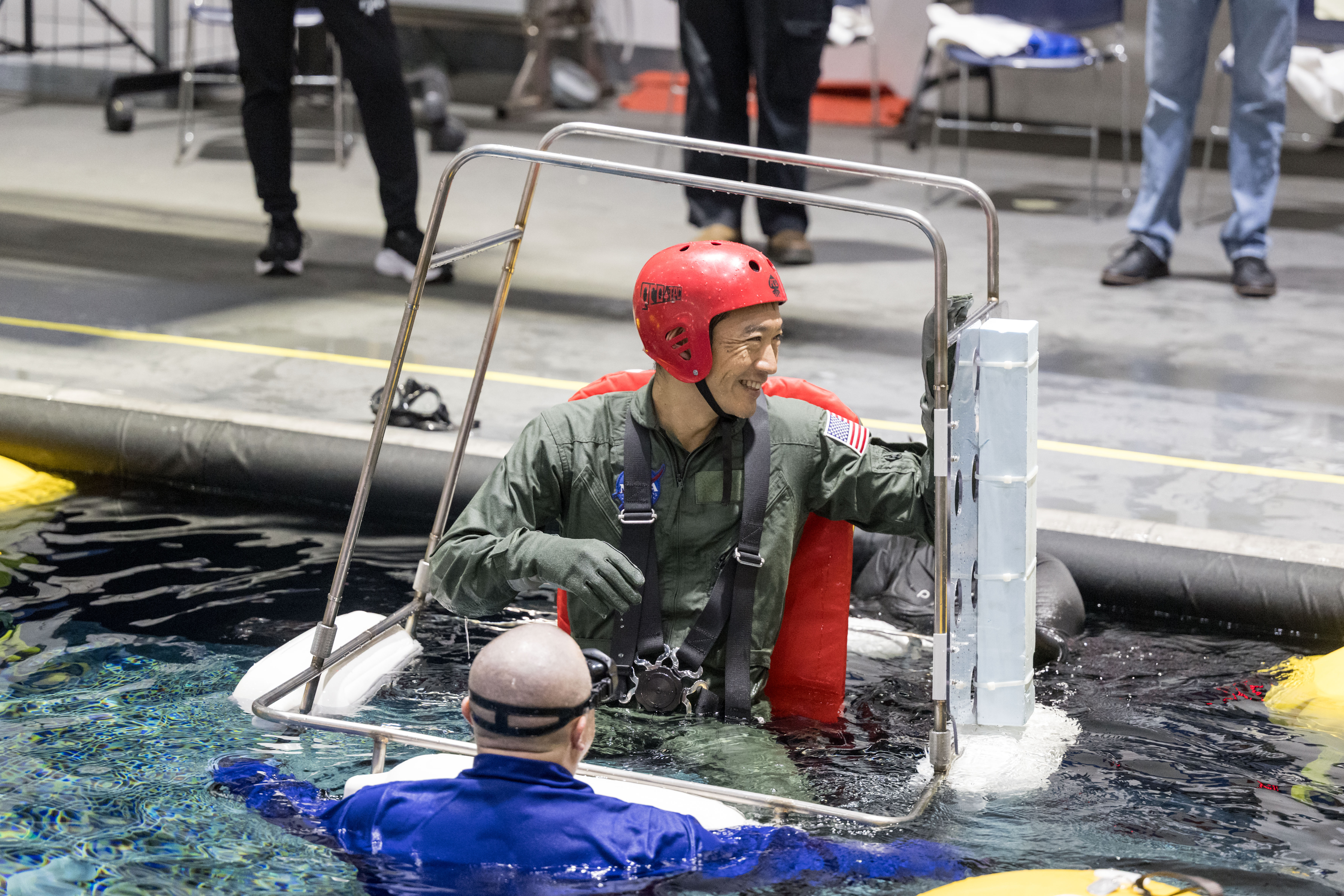 水上サバイバル訓練を行う諏訪理宇宙飛行士 / ASCAN 2025 Class Water Survival Training / NASAジョンソン宇宙センター(JSC) 無重量環境訓練施設(Neutral Buoyancy Laboratory: NBL) / 撮影日:2026年2月13日(日本時間)(jsc2026e007254)