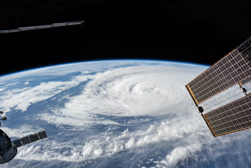 ISSから撮影された日本列島上空の台風22号「ハーロン」