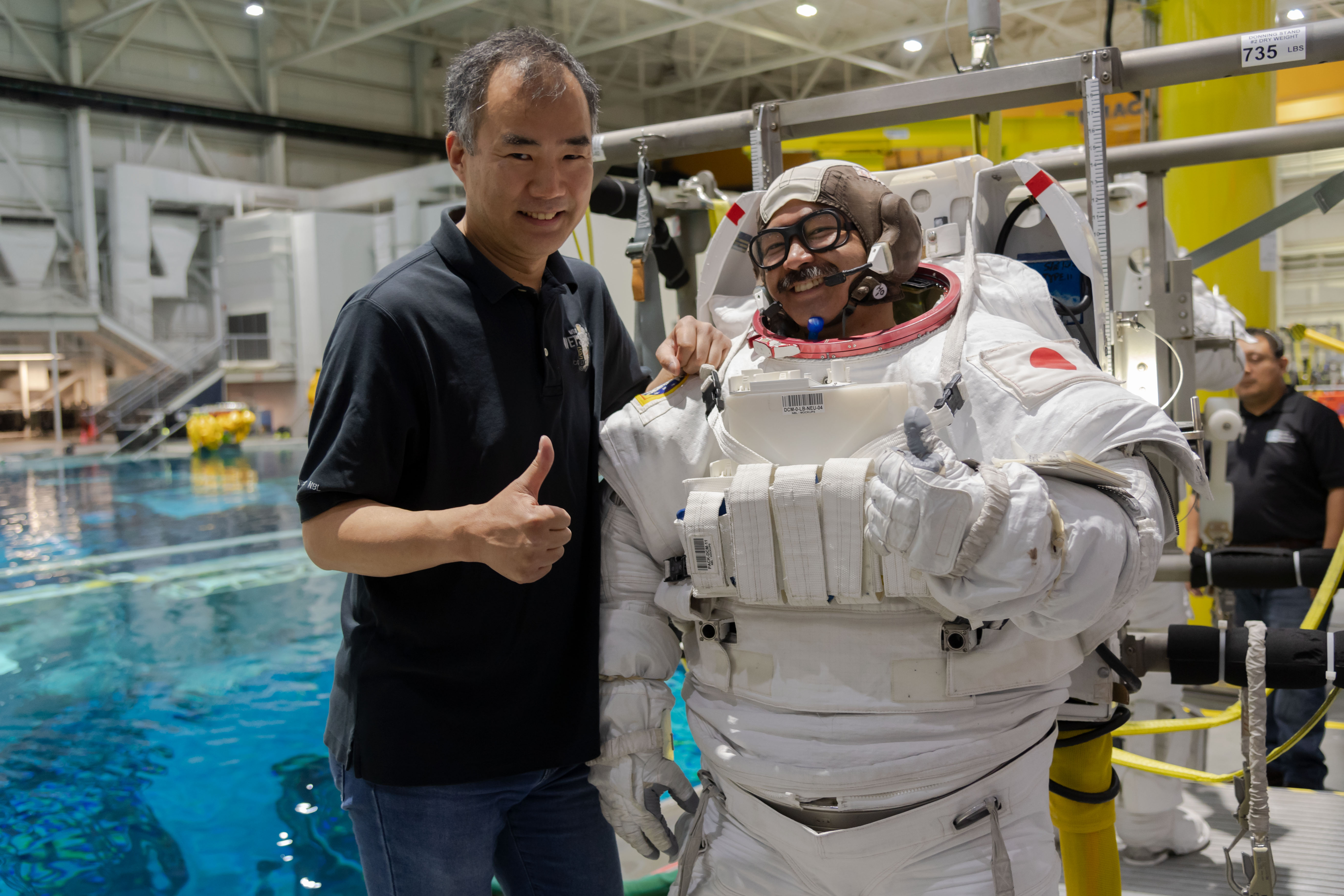 船外活動(Extravehicular Activity: EVA)訓練での野口聡一、星出彰彦両宇宙飛行士 / NASAジョンソン宇宙センター(JSC) 無重量環境訓練施設(NBL) / 撮影日:2019年5月29日(日本時間)(jsc2019e031208)