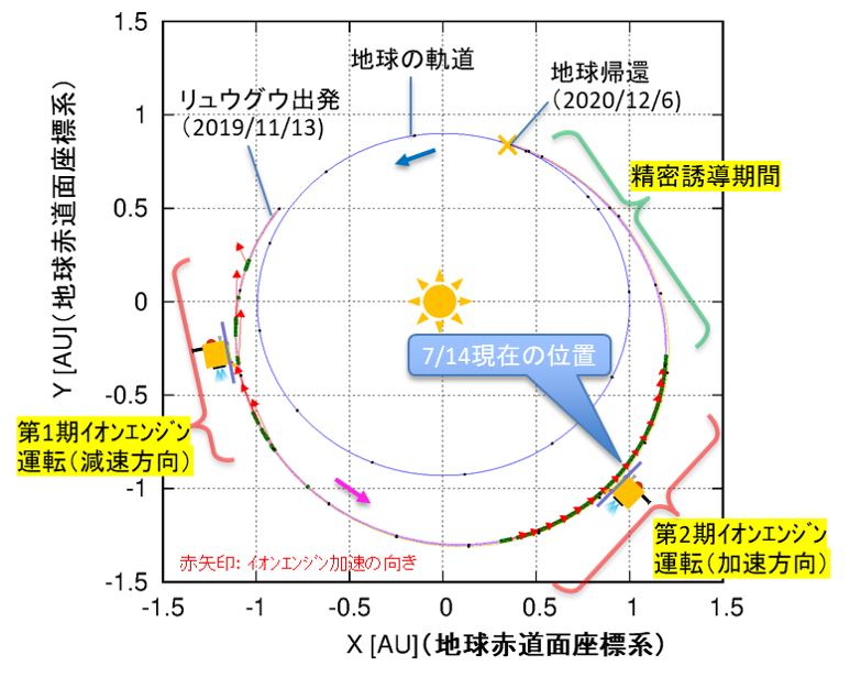 小惑星探査機「はやぶさ2」の記者説明会(2020/07/14 / Jul. 14, 2020) 7/14現在の軌道 (文字あり)