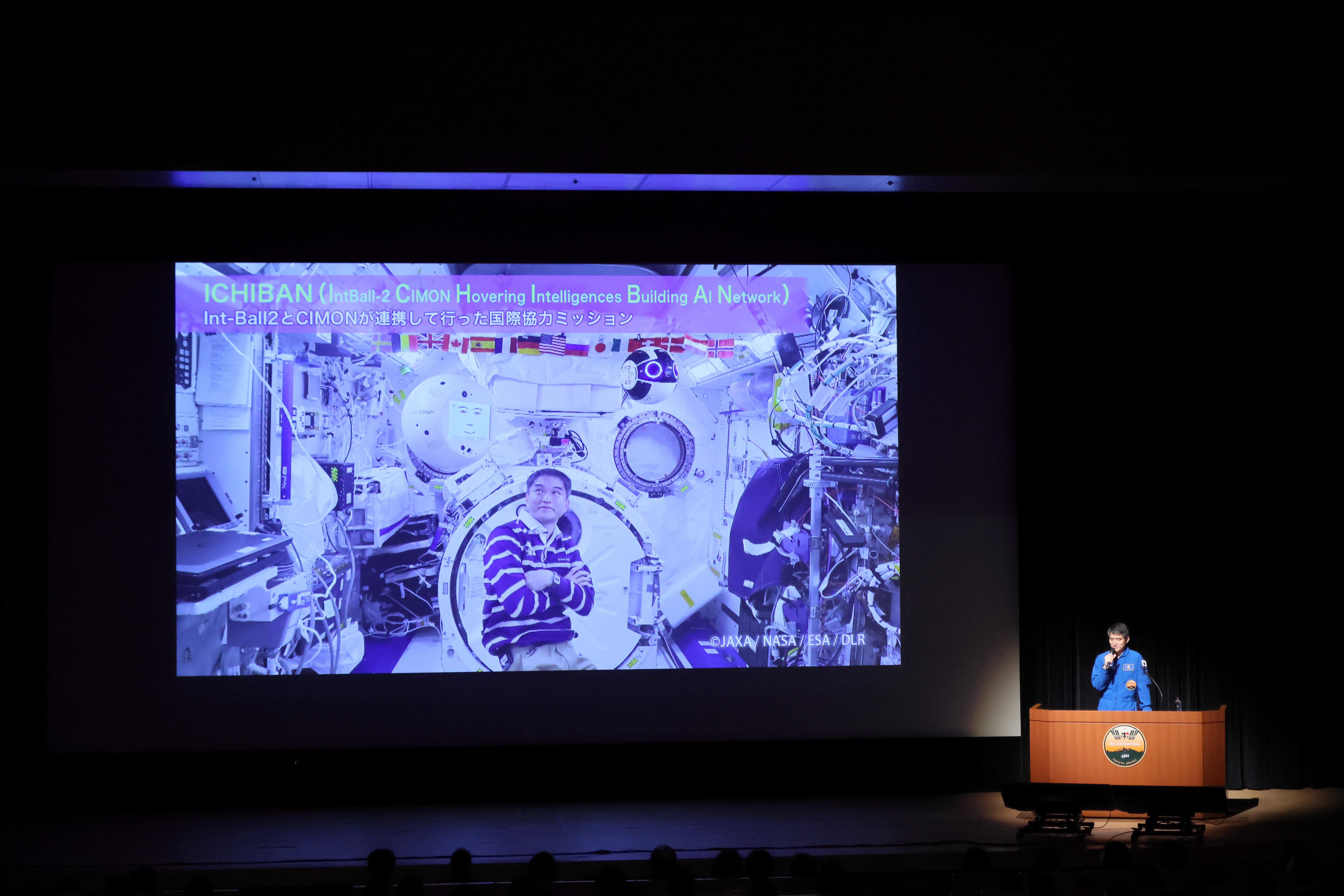 ISS長期滞在ミッション報告を行う大西卓哉宇宙飛行士 / 大西宇宙飛行士ミッション報告会 / 帝京平成大学 池袋キャンパス 冲永記念ホール / 撮影日:2025年11月14日(日本時間)
