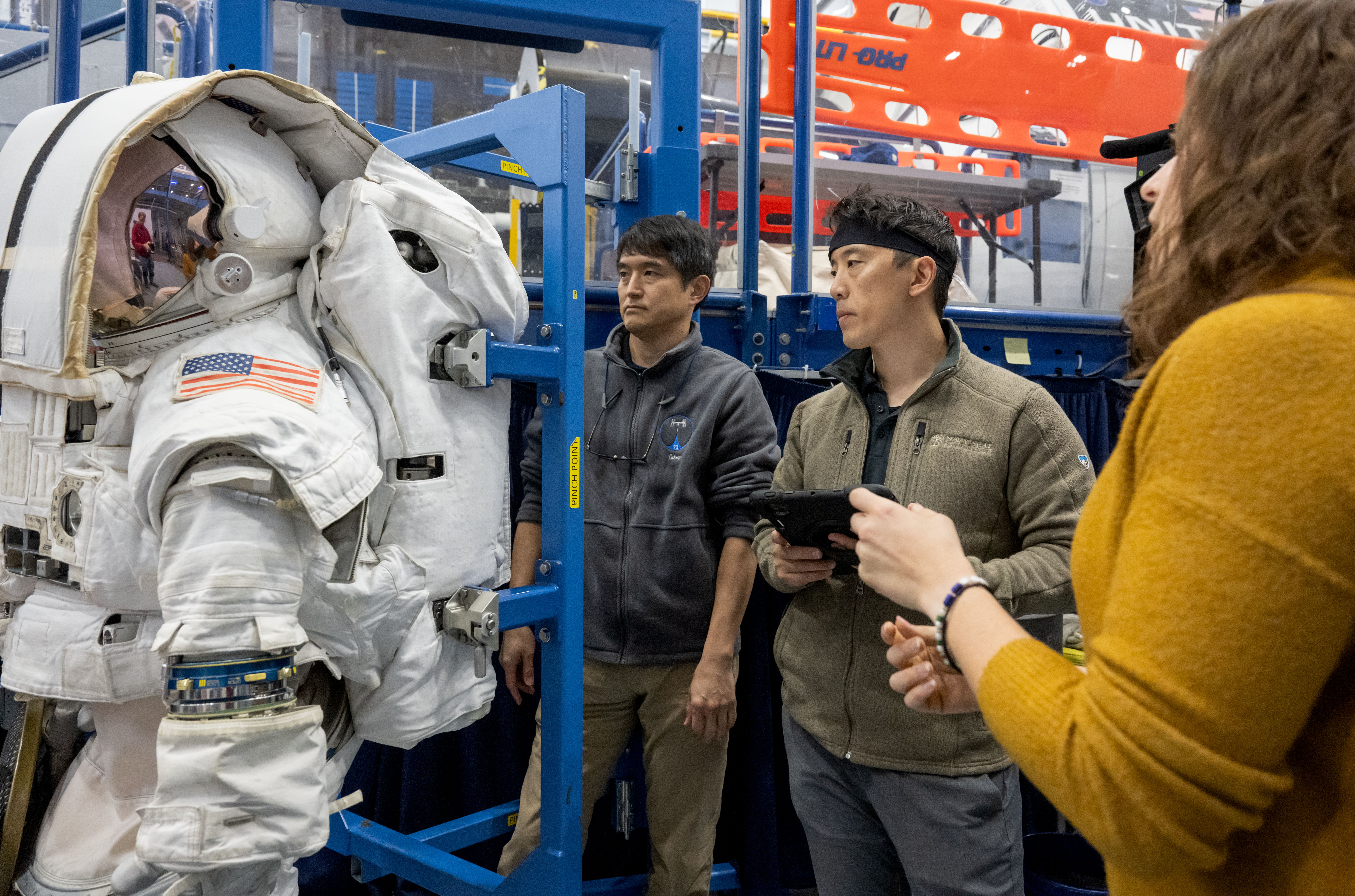 船外活動ユニット(Extravehicular Mobility Unit: EMU)の修復に関する訓練を行う大西卓哉、ジョニー・キム両宇宙飛行士 / NASAジョンソン宇宙センター(JSC) / 撮影日:2024年12月13日(日本時間)(jsc2024e080384)