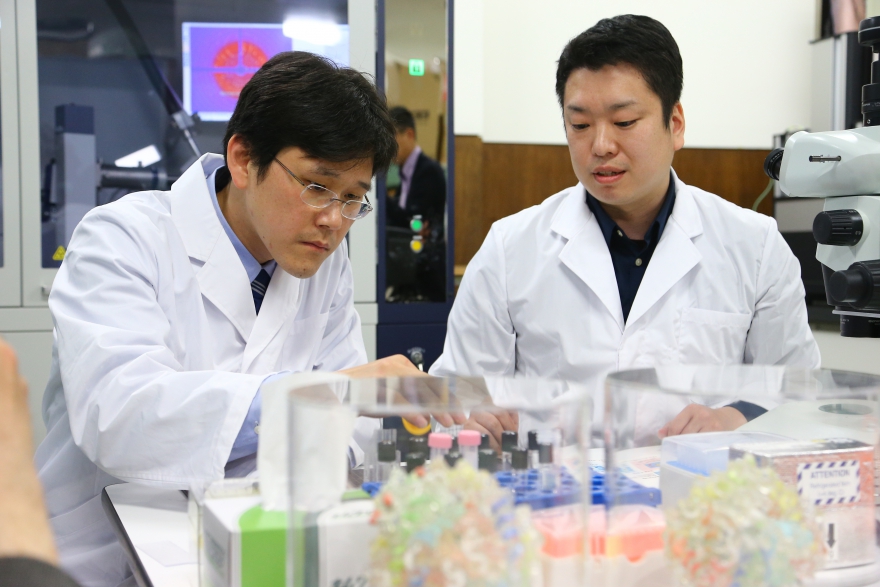タンパク質結晶実験に関する訓練を行う金井宣茂宇宙飛行士 / 金井宣茂宇宙飛行士訓練公開時に撮影 / 筑波宇宙センター(TKSC) 宇宙実験棟 / 撮影日:2017年4月18日(日本時間)