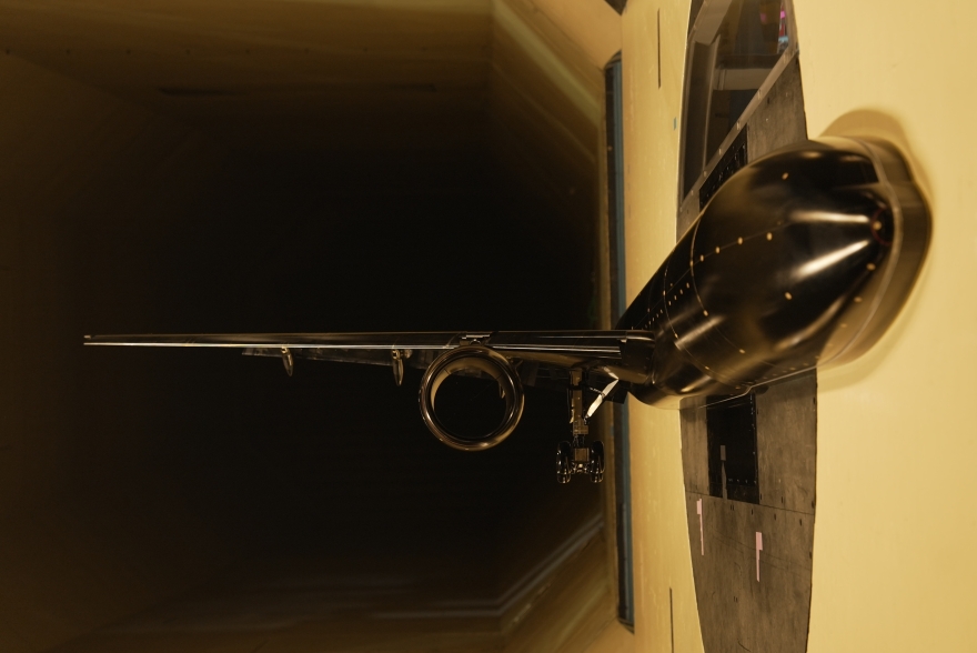 レーザシート光を用いた、JAXA最大級のCRM-HL 8%半裁模型まわりの流れの可視化風洞試験