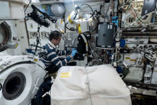 ライブイメージングシステム(COSMIC)に関する作業を行う油井宇宙飛行士