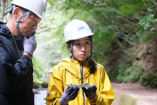 基礎訓練(Earth Geology Field Work2_基礎地質学(浅間))にて巡検を行う米田、諏訪両宇宙飛行士候補者