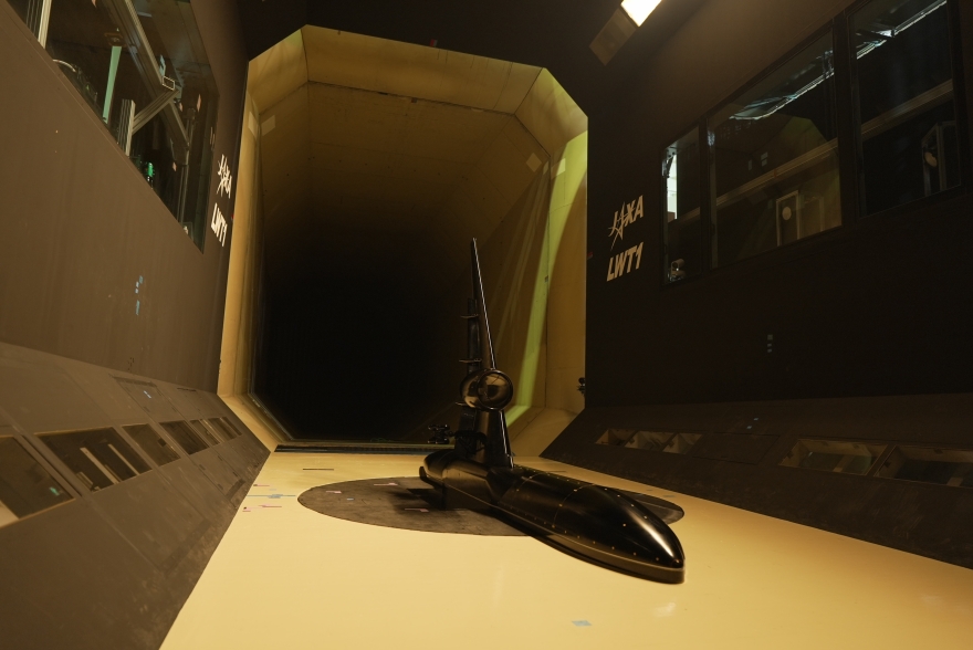 レーザシート光を用いた、JAXA最大級のCRM-HL 8%半裁模型まわりの流れの可視化風洞試験