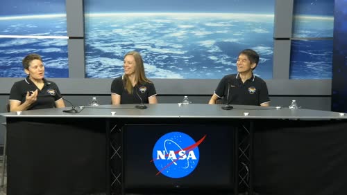 帰還後の記者会見を行う大西卓哉宇宙飛行士らクルードラゴン宇宙船運用10号機(SpaceX Crew-10)クルー / クルードラゴン宇宙船運用10号機(SpaceX Crew-10)クルー:アン・マクレイン、ニコル・エアーズ、大西卓哉、キリル・ペスコフ宇宙飛行士 / NASAジョンソン宇宙センター(JSC) / 撮影日:2025年8月21日(日本時間)