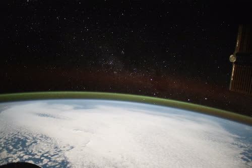 ISSから撮影された星空と地球