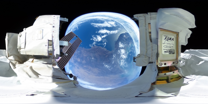 中型曝露実験アダプター(IVA-replaceable Small Exposed Experiment Platform: i-SEEP)に設置された小型衛星光通信実験装置(Small Optical Link for International Space Station: SOLISS)のモニタカメラ(360度カメラ「RICOH THETA」)から撮影された地球の様子 撮影:朝鮮半島上空