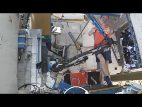 制振装置付きトレッドミル2(T2/COLBERT)でトレーニングする油井宇宙飛行士