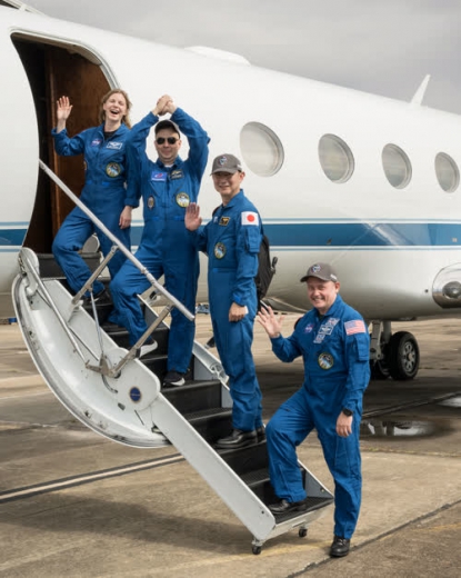 NASAケネディ宇宙センター(KSC)に向けて出発する直前の油井宇宙飛行士らSpaceX Crew-11クルー