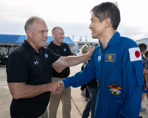 帰還後エリントン空港に到着する大西宇宙飛行士らSpaceX Crew-10クルー
