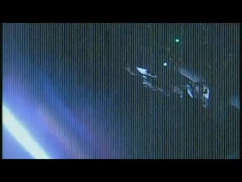 ISSのロボットアーム(SSRMS)に把持されたHTV-X1号機