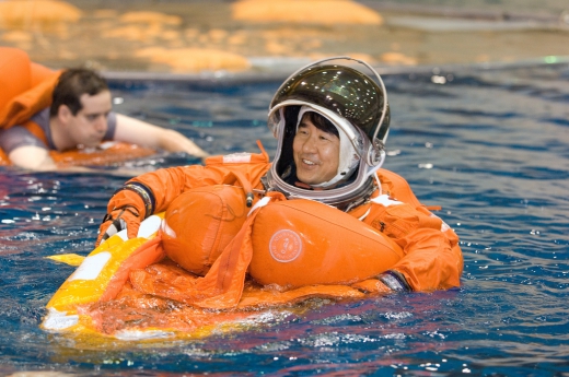 ウォーターサイバル訓練中の土井宇宙飛行士1