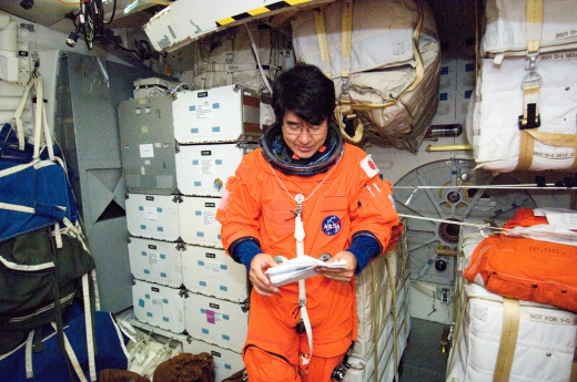 「きぼう」日本実験棟船内保管室への入室手順を確認する土井宇宙飛行士1