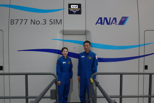基礎訓練(心理支援プログラム)にて記念撮影を行う米田、諏訪両宇宙飛行士候補者