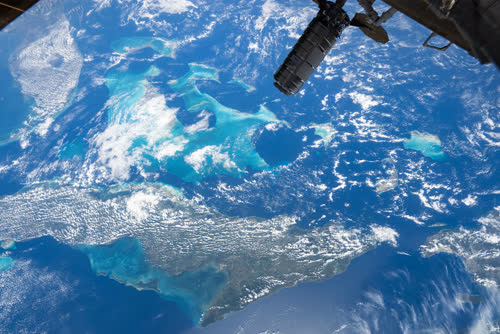 ISSから撮影されたバハマ諸島、キューバ